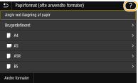 Du kan tilpasse skærmen Hjem ved at omarrangere ofte anvendte knapper, så der er lettere adgang til de respektive funktioner. Tilpasning af skærmen |