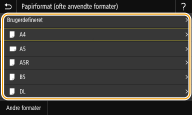 2 | Angiv længden på <X>-siden og <Y>-siden. Vælg <X> eller <Y>, og indtast længden af hver side ved hjælp af taltasterne. ![]() ![]() Hvis du registrerer de ofte anvendte papirformater på knapperne <S1> til <S3>, kan du aktivere dem med ét enkelt tryk. Registrering af brugerdefineret papirformat |
