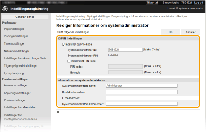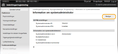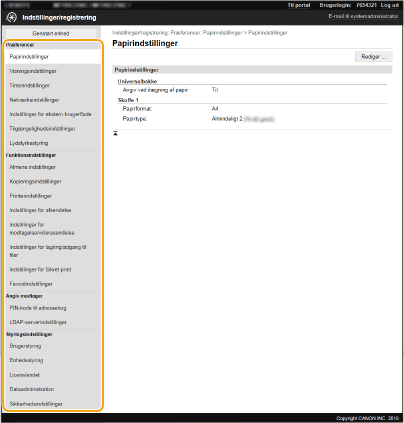 Nogle indstillinger kan kun ændres, når du er logget på i Systemadministratortilstand. Nogle indstillinger kan kræve handlinger, der er anderledes end den her beskrevne fremgangsmåde. |