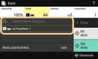 <Alk./lop. tyyppi>![]() | Voit suurentaa tai pienentää kopioita käyttämällä esiasetettua kopiointisuhdetta, kuten <A5->A4>, tai määrittämällä mukautetun kopiointisuhteen 1 %:n tarkkuudella. |