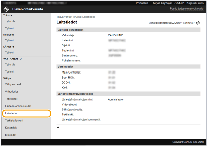 Jos haluat työskennellä asiakirjojen kanssa, joiden lähettäminen edelleen epäonnistui, sinun täytyy määritä seuraavat asetukset: Valitse <Käytä muistin lukitusta> -asetukseksi <Kyllä>. Valitse <Käytä faksin esikatselua> -asetukseksi <Kyllä>. Kirjaudu sisään etäkäyttöliittymään järjestelmänvalvojan tilassa. Voit poistaa asiakirjat, joiden lähettäminen edelleen epäonnistui, napsauttamalla [Poista]. Voit näyttää asiakirjan, jonka lähettäminen edelleen epäonnistui, tarkat tiedot tai esikatsella sitä, napsauttamalla [Työnumero]. Voit myös tulostaa / lähettää uudelleen / poistaa asiakirjoja, joiden lähettäminen edelleen epäonnistui, käyttämällä laitteen käyttöpaneelia. |