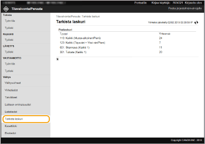 [Työn tila] kohdassa [VASTAANOTTO]![]() |