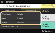 ![]() | Kun sähköpostiin liitetään skannattuja alkuperäisiä, voit määrittää sen aiheen, tekstin, vastausosoitteen ja tärkeyden ennen lähettämistä. |