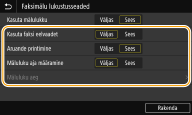 Mälus talletatud vastuvõetud dokumentide printimiseks määrake säte <Kasuta mälulukku> olekusse <Väljas>. Mällu salvestatud dokumendid prinditakse.