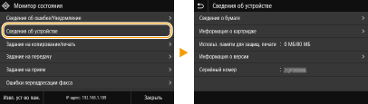 Можно изменить различные параметры, связанные с отображением, например используемый язык: <Настройки отображения> Можно изменить экран, который автоматически отображается, если аппарат бездействует в течение указанного количества времени: <Функция после автоматич. перезапуска> Можно изменять различные настройки, связанные с удобством использования, например яркость экрана: <Специальные возможности> |