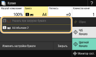 Тип копирования <Двусторонний режим печати> может быть недоступен для некоторых форматом и типов бумаги. Доступная бумага |