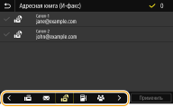 3 | Установите флажок требуемого адреса для ответа и выберите <Применить>. В качестве адреса для ответа можно задать только один из адресов электронной почты, зарегистрированных в адресной книге. |