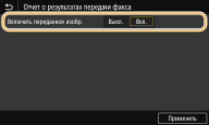 Выберите <Вкл.> для печати отчетов об отправке и приеме отдельно или <Выкл.>, чтобы печатать оба отчета на одном листе.