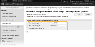 Имя рабочей группы представляет собой имя, используемое для объединения нескольких компьютеров в группу, чтобы обеспечить доступ к основным функциям сети (например, общий доступ к файлам) для сети под управлением Windows. Укажите имя рабочей группы, состоящее из символов букв и цифр, для определения группы, к которой принадлежит аппарат.