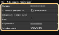 <Состояние беспроводной сети> и <Информация о последней ошибке> можно просматривать только с экрана <Монитор состояния>.