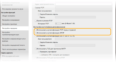 Чтобы использовать POP3-сервер для аутентификации перед отправкой электронной почты или интернет-факсов, установите этот флажок.