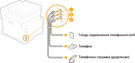 Якщо використовується телефон або автовідповідач, підключіть його до зовнішнього телефонного гнізда (