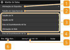 Quando seleciona <Monitor Status>, aparece um ecrã que permite verificar o progresso dos documentos, bem como o estado da máquina e as definições de rede.