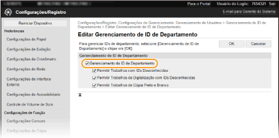 Selecione a caixa de verificação [Gerenciamento de ID de Departamento].