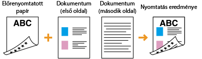 A <Papíradagolási mód váltása> beállításHa felváltva nyomtat egy- és kétoldalasan az előnyomott papírokra, akkor minden váltáskor módosítania kell a nyomtatandó oldalt. Ha viszont a <Papíradagolási mód váltása> beállítás a <Nyomtatott oldal prioritása> értékre van állítva, akkor a kétoldalas nyomtatásnál a fejléces papír behelyezésekor alkalmazott helyzet használható egyoldalas nyomtatáshoz is. Ez a beállítás különösen hasznos, ha gyakran kell egy- és kétoldalas nyomatot is készítenie. <Papíradagolási mód váltása>