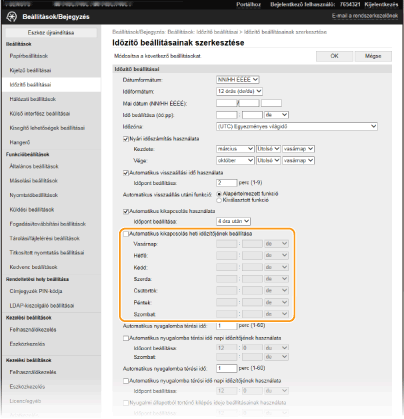 *Ha a készüléket nem tud automatikusan kikapcsolni a megadott időpontban, akkor legfeljebb tíz percen keresztül percenként újra megkísérli a kikapcsolást. Ha a kikapcsolás tíz kísérlet után sem sikerül, akkor az automatikus kikapcsolás az adott napon már nem lehetséges.