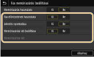 Egyszerre nem választható ki a <Fax előnézetének használata> és a <Memóriazárási idő beállítása>.