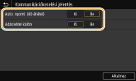 Válassza a következők valamelyikét: <Be> vagy <Csak hibánál>