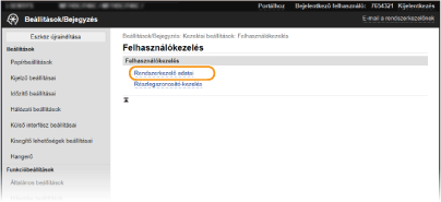 Néhány beállítás csak akkor módosítható, ha rendszerkezelői módban jelentkezik be.