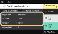 Amikor beolvasott eredetiket csatol egy e-mailhez, megadhatja a tárgyat, az üzenetet, a válaszcímet, valamint az e-mail prioritását az elküldés előtt.