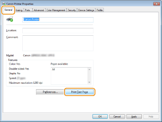 Spustelėkite [Spausdinti bandomąjį puslapį], esantį skirtuke [Bendra].