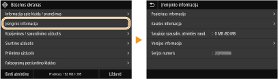 Galite keisti įvairius su ekranu susijusius parametrus, pavyzdžiui, ekrano kalbą: <Rodymo parametrai>