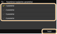 Jei ekranas Pagrindinis yra pilnas ir daugiau parametrų užregistruoti negalima, pašalinkite užregistruotus mygtukus ir tarpus <Pagr. ekrano parametrai>.