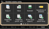 Ekrane Pagrindinis galite pridėti dažnai naudojamų funkcijų, pvz., <Kopijuoti>, <Faksas> ir <Nuskaityti>, nuorodų mygtukus. Pavyzdžiui, galite atlikti užduotis greičiau ir efektyviau, priskirdami parametrų seką (pvz., „Nuskaityti abi originalo puses, išsaugoti labai suspaustame PDF faile ir išsiųsti el. paštu“) vienam mygtukui.