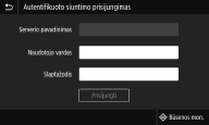 LDAP serverio autentifikavimas) yra įgalintas, naudojantis fakso ar nuskaitymo funkcijomis yra rodomas autorizuoto siuntimo prisijungimo ekranas.