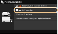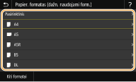 Jeigu užregistruojate dažnai naudojamo popieriaus formatą naudodami mygtukus <S1>–<S3>, galite iškviesti juos vienu lietimu. Pasirinktinio popieriaus formato registravimas