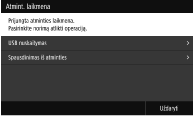 Jei <Ekranas, kai prijung. atm. laik.> nustatytas į <Įjungta>, galimi veiksmai rodomi, kai įstatote USB atminties įrenginį, kol rodomas Pagrindinis ekranas. <Ekranas, kai prijung. atm. laik.>