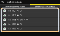 Pasirinkite dokumentą, kurio žurnalą norite peržiūrėti skirtuke <Siuntimo užduočių žurnalas> arba <Priėmimo užduočių žurnalas>.
