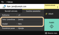 Jeigu adresatas pasirinktas iš <Adresų knyga> ekrane Pagrindinis, pagrindinių fakso funkcijų ekranas siunčiant internetinę faksogramą gali būti rodomas, kol bus nurodyta likusi pasirinkto adresato dalis.