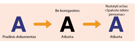 Galite koreguoti, pvz., nustatyti juodą arba beveik juodą tekstą atkurti daugmaž originalo, kuris buvo nuskaitytas spalvotai, spalva.