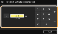 Parametrų meniu naudojant <Funkcijų parametrai> galima koreguoti visų spausdinimo užduočių spausdinimo padėtį neatsižvelgiant į popieriaus šaltinį. Spausdinimo padėtį galima koreguoti 0,5 mm žingsniu nuo -50,0 mm iki +50,0 mm. <Pastumti trumpąjį kraštą/Pastumti ilgąjį kraštą>