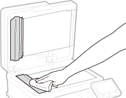 Prie tiektuvo viduje esančio velenėlio ar dokumentų tiektuvo nuskaitymo srityje prilipę grafito milteliai arba dulkės gali sukelti dėmių atsiradimą spaudiniuose. Jeigu taip nutinka arba dažnai stringant popieriui, išvalykite tiektuvą. Jei problema kartojasi išvalius tiektuvą, atlikite automatinį tiektuvo valymą.