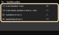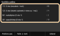 Galite tikrinti atskiras puslapių, sunaudotų spalvotiems ir nespalvotiems spaudiniams, bendruosius kiekius. Šie bendrieji kiekiai, be kopijų ir duomenų iš kompiuterių spaudinių, apima faksogramas, ataskaitas ir sąrašus.