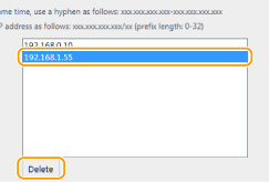 Pasirinkite IP adresą ir spustelėkite [Delete].