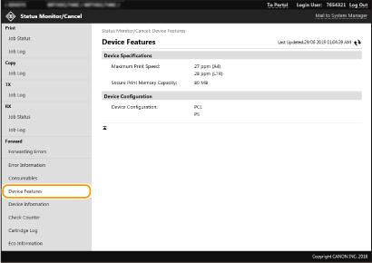 Nepaisant skyriaus ID valdymo parametro, bus pateikti visi šiuo metu spausdindami ir spausdinimo laukiantys dokumentai.