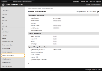 Sistemos administratoriaus režimu prisijunkite prie „Remote UI“ (Nuotolinio naudotojo sąsaja).