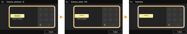 Prisijungimas prie aparatoBandant gauti prieigą prie elementų, kuriems būtinos administratoriaus teisės, pvz., <Tinklas> ir <Valdymo parametrai>, rodomas prisijungimo ekranas, jeigu nurodytas sistemos administratoriaus ID. Prisijungimas prie aparato