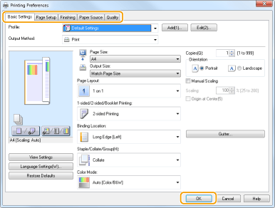 Jei reikia, nurodykite spausdinimo parametrus ir spustelėkite [OK].
