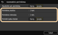 Pasirinkite <Įjungta> srityje <Naudokite aut. perrinkimą>