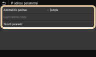 Patikrinkite, ar <Automatinis IP> nustatyta kaip <Įjungta>.