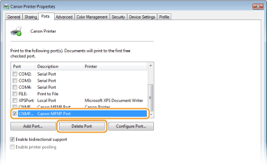 Pasirinkite prievadą, kurį norite panaikinti, tada spustelėkite [Naikinti prievadą].