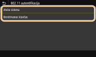 Jei belaidžiame maršrutizatoriuje nustatytas bendrinamo rakto autentifikavimas, jungianti prie belaidžio LAN aparate kyla autentifikavimo klaida. Jei taip nutinka, aparatas automatiškai pakeičia parametrą į <Bendrinamas klavišas> ir pakartotinai bando užmegzti ryšį.