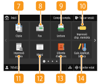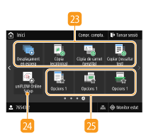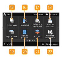 Mostra les "Opcions preferides" desades per a la còpia, l'enviament de fax i la lectura. Addició de botons a la pantalla Inici