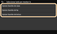 Podeu afegir botons de drecera a la pantalla Inici per a les funcions que feu servir amb més freqüència, com ara <Còpia>, <Fax> i <Lectura>. Per exemple, podeu dur a terme tasques d'una manera més ràpida i eficient si assigneu una seqüència d'opcions (com ara, "Llegir les dues cares d'un original, desar-lo com a fitxer PDF molt comprimit i enviar-lo per correu electrònic") a un sol botó.