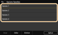 A fi que pugueu recuperar ràpidament les mateixes opcions per a les funcions de còpia, fax i lectura, podeu desar-les com a opcions preferides. Podeu afegir combinacions d'opcions desades a la pantalla Inici com a botons de drecera.