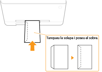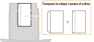 En aquesta secció es descriu la manera com es carreguen els sobres amb l'orientació que vulgueu, a més dels procediments que cal seguir abans de carregar-los. Per obtenir una descripció del procediment general per carregar sobres al calaix de paper o a la ranura d'alimentació manual, consulteu Càrrega de paper al calaix o Càrrega de paper a la ranura d'alimentació manual.